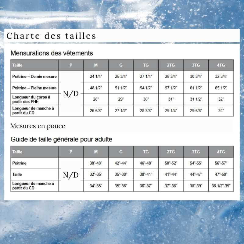 | Tailles disponibles | M, L, XL, 2XL, 3XL, 4XL |